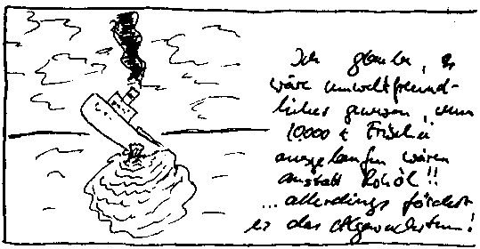 Ich übernehme keinerlei Haftung für Links auf dieser oder irgendeiner anderen Seite meiner Homepage, die in eine andere Domain verzweigen. Ich bin nicht dafür verantwortlich, was andere Leute auf ihren Seiten an evtl. anstößigem, unmoralischen oder gar illegalem Inhalt anbieten. Zum Zeitpunkt der Linksetzung waren diese Seiten OK.